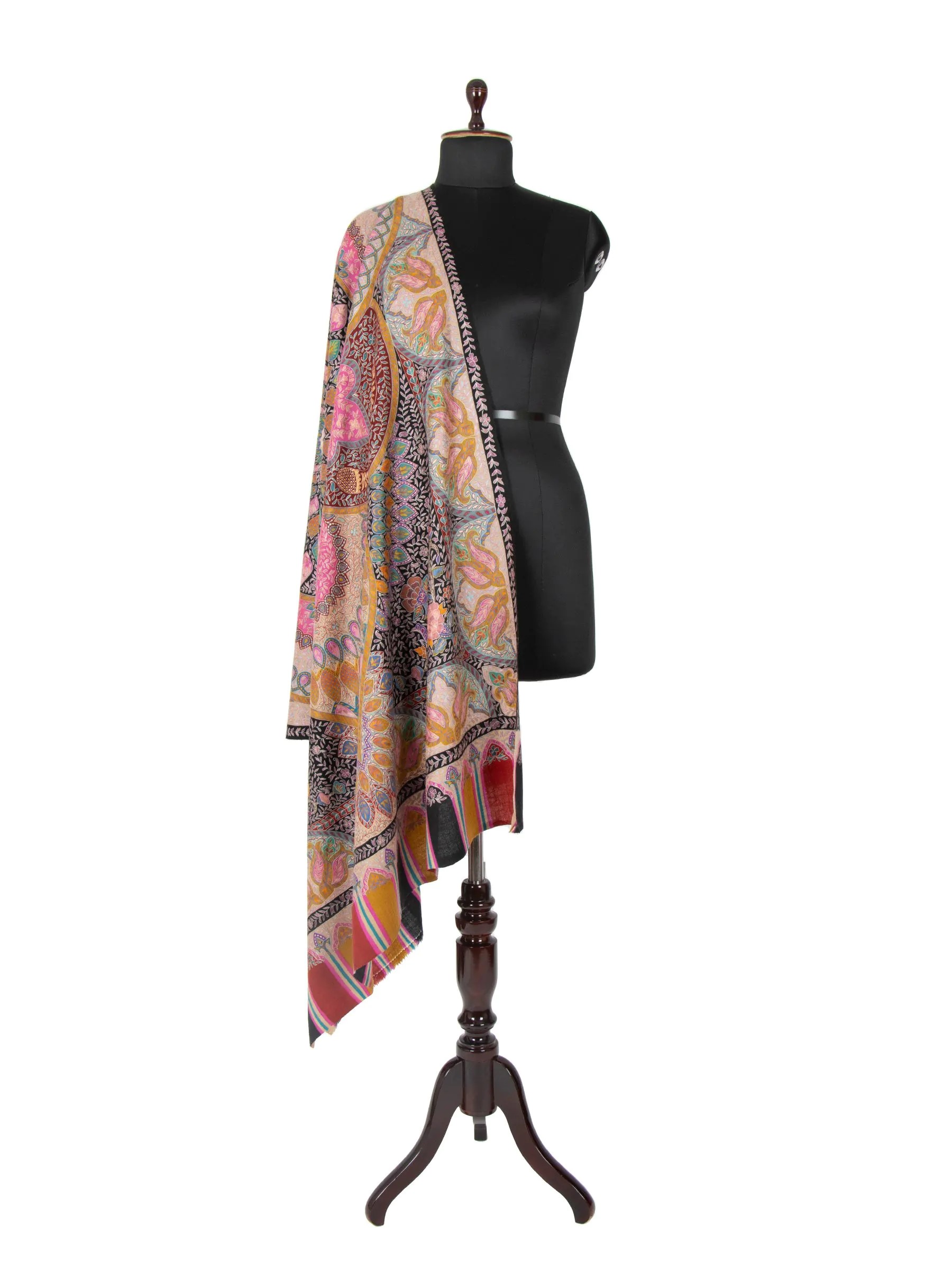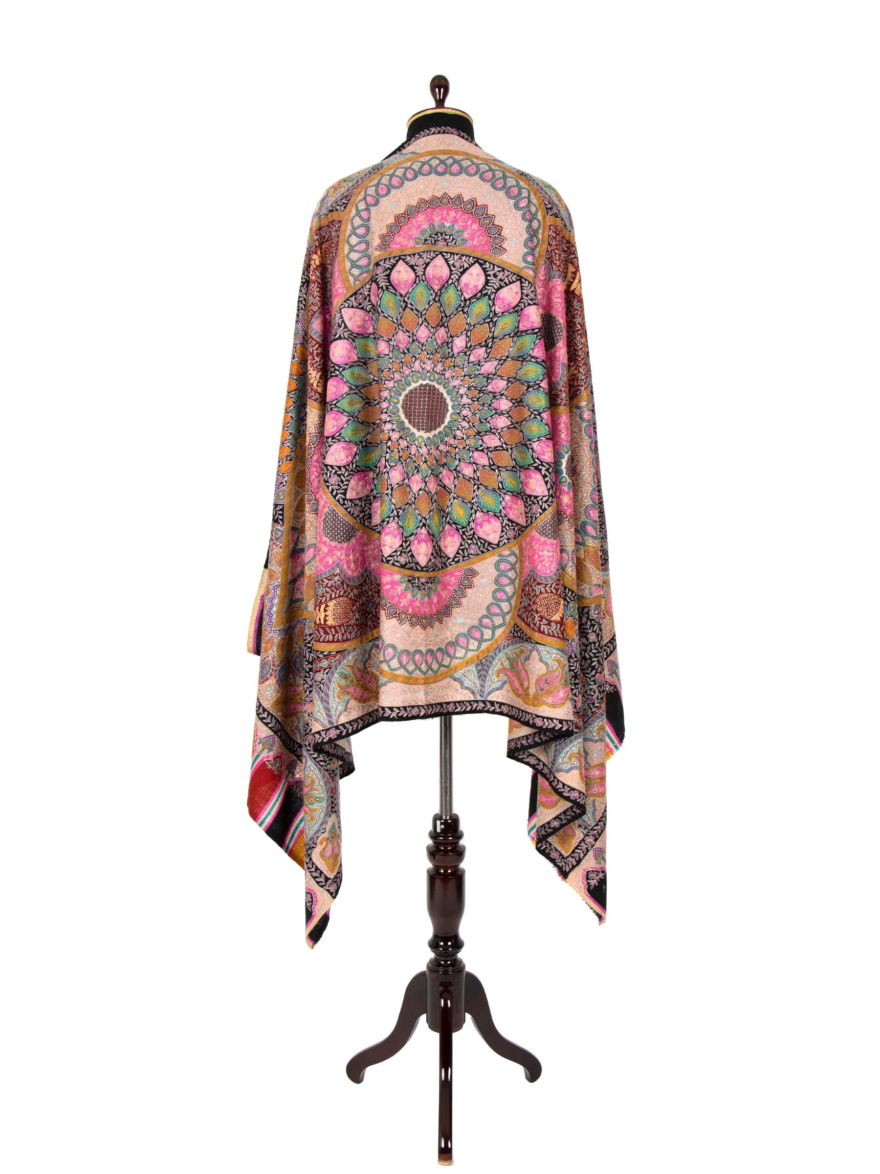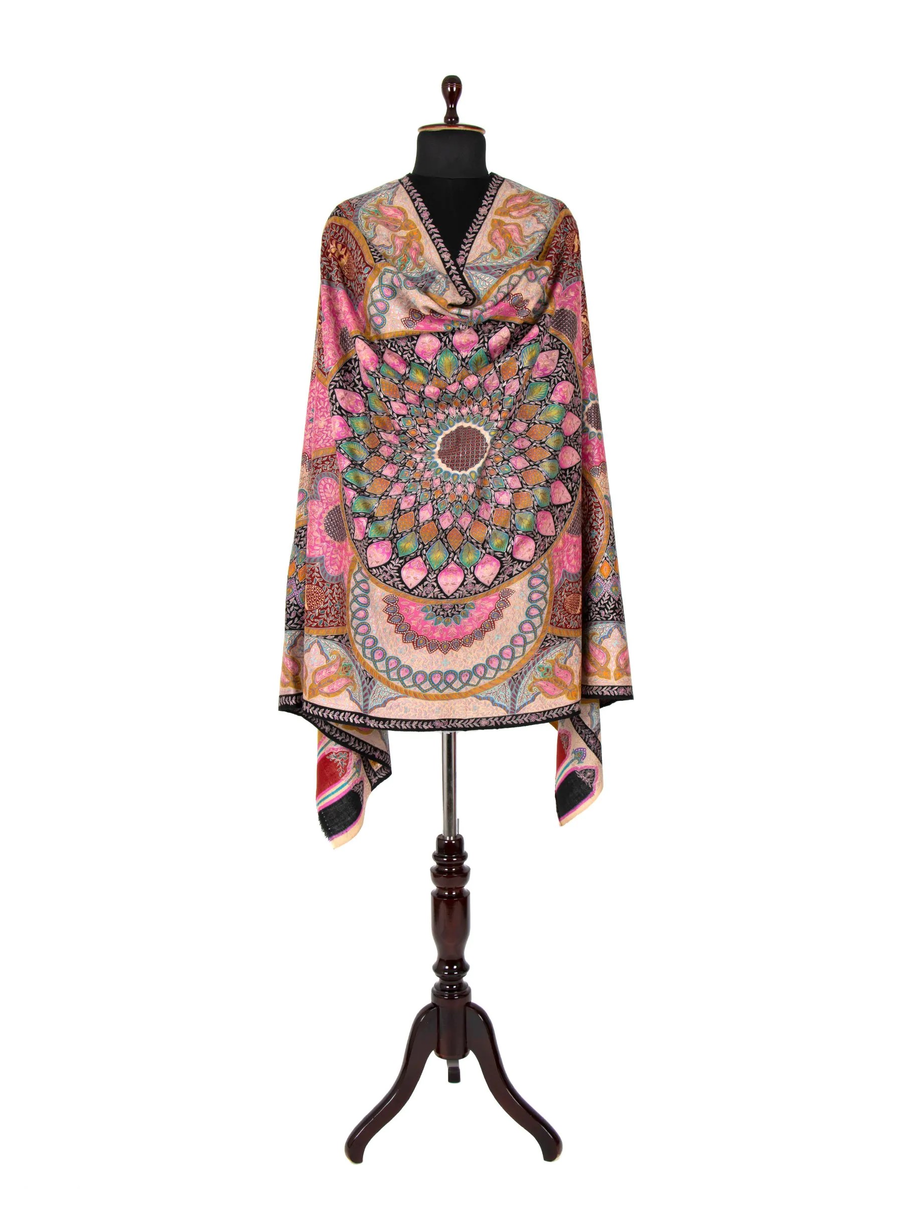 This exquisite shawl is a masterpiece of art and craftsmanship, made from the finest Kashmiri Pashmina and handwoven by skilled artisans. It incorporates the ancient Kalamkari art form into its intricate design, celebrating nature with elements of all seasons. The result is a stunning piece that seamlessly blends timeless tradition with contemporary elegance, perfect for any occasion. Features include the use of premium materials, intricate patterns inspired by nature, and skilled craftsmanship. Benefits include timeless style, elegance, comfort, warmth, and the opportunity to stand out with a unique conversation piece.
