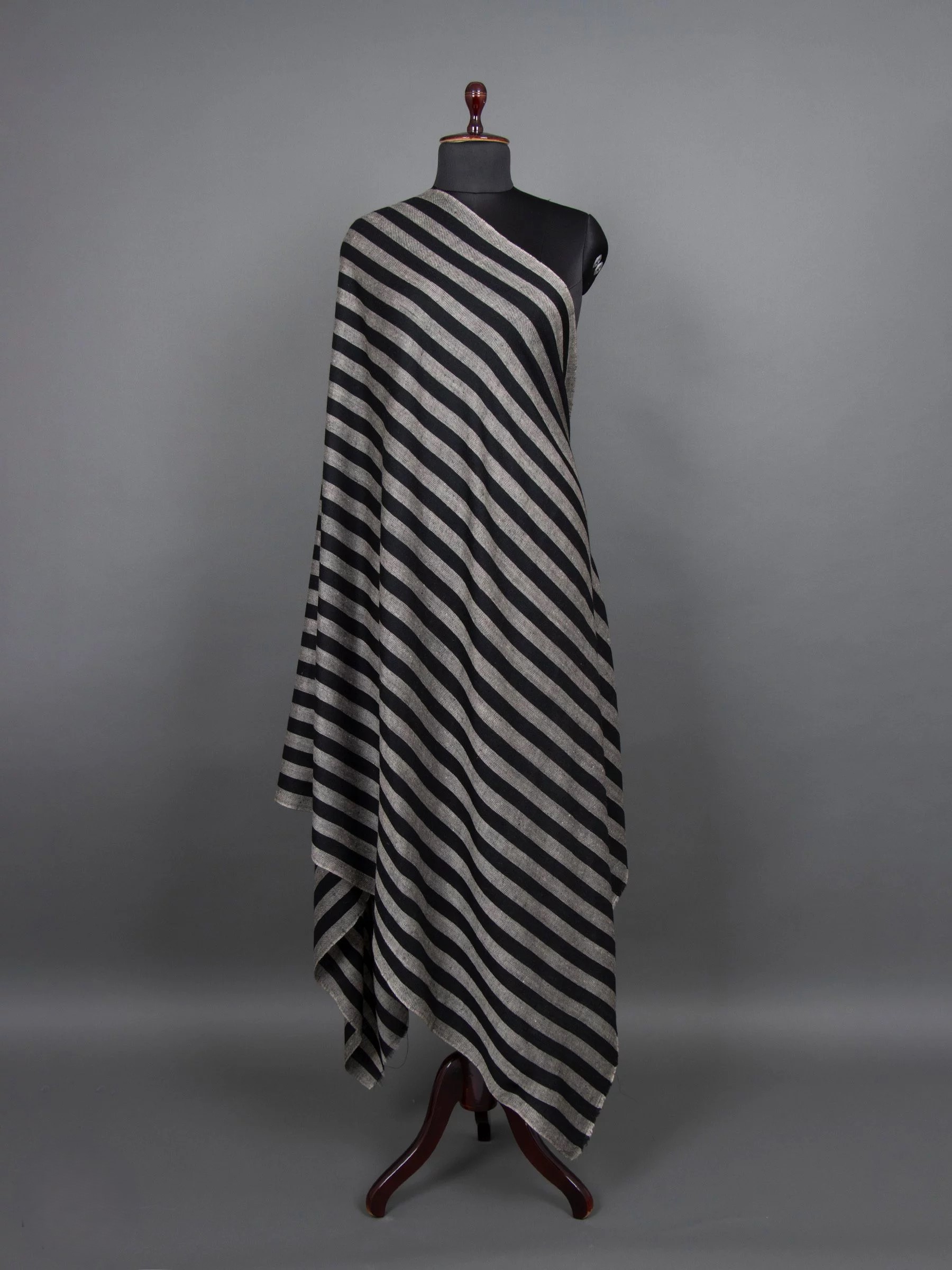 The Black and Grey Striped Pashmina Shawl is a hand-made, hand-woven accessory known for its distinctive elegance. Its subdued tones can enhance any look subtly, making it a valuable statement piece. Beyond its aesthetic appeal, the shawl reflects a rich tradition upheld through generations, showcasing the meticulous craftsmanship involved. Priced as a pure Pashmina shawl in India, its warmth goes beyond the physical, providing an authentic connection to heritage and comfort. In essence, this accessory represents a harmonious blend of style, culture, and supreme comfort unique to pure Pashmina