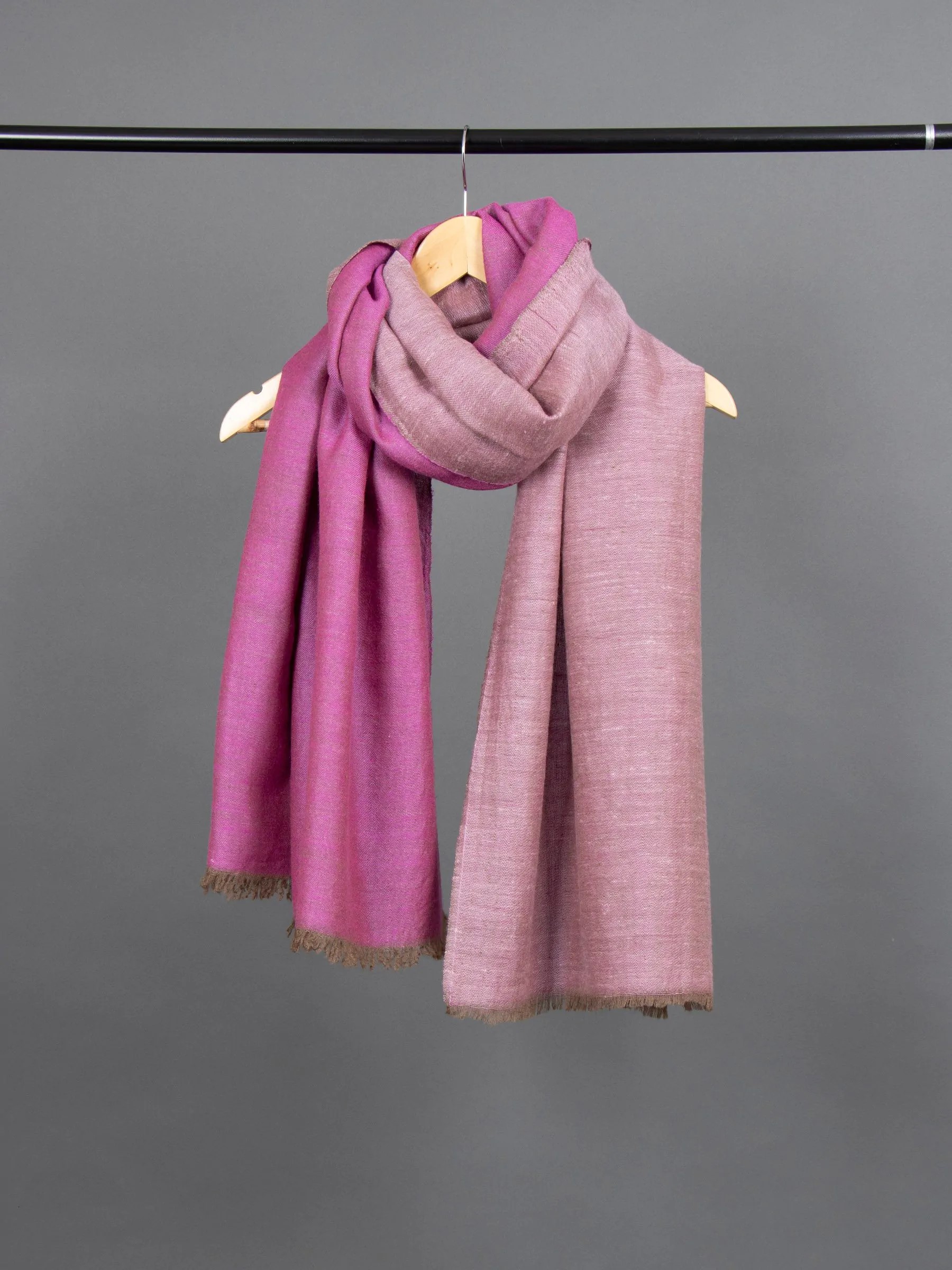 The Blush Bloom Pink Dual Shade Pashmina Shawl features a versatile design with two shades, allowing easy style variations. The soft blush pink and a muted tone on the other side offer endless styling possibilities. This shawl adds sophistication and charm, making it a must-have for fashion enthusiasts seeking a chic wardrobe accessory.
