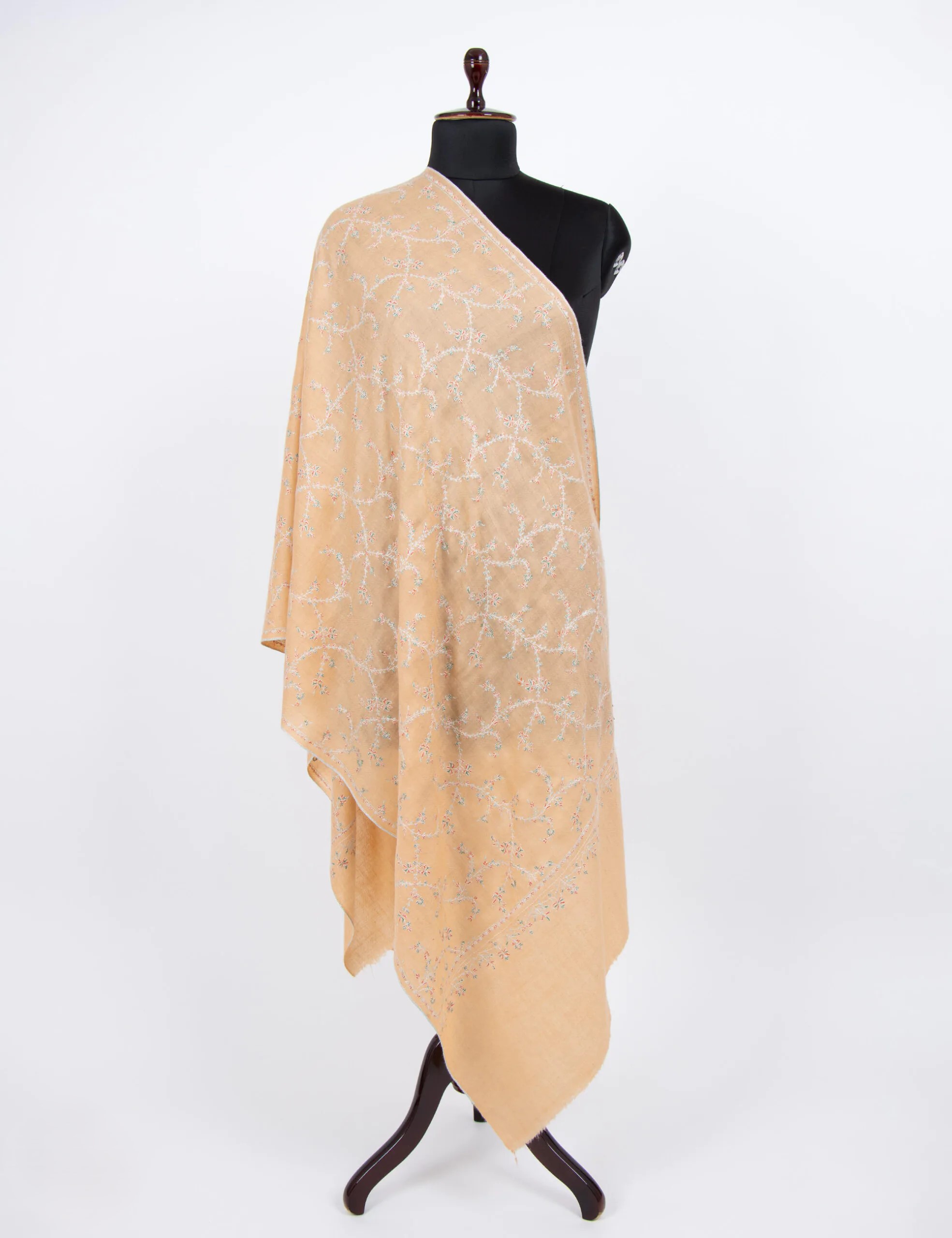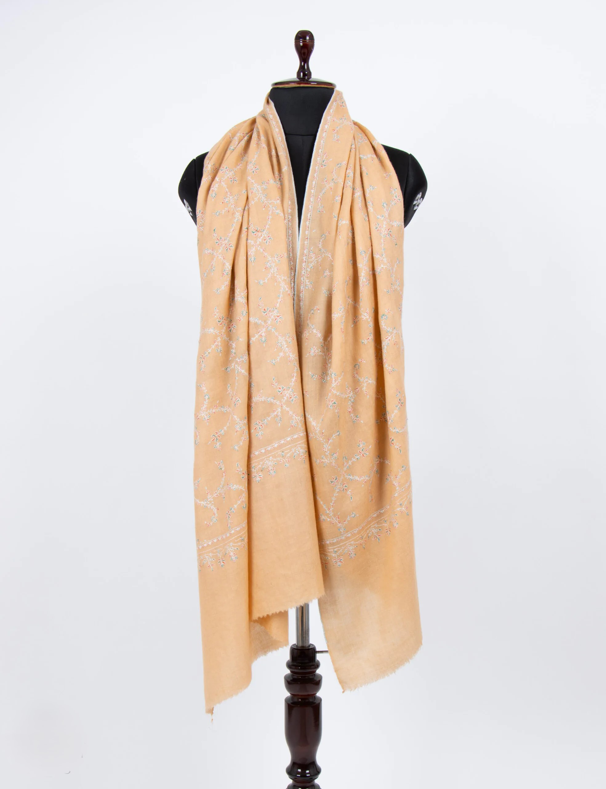 Discover the Blush Embroidered Pashmina Wrap—a masterpiece of Ladakhi craftsmanship. Handwoven from pure pashmina, it boasts unrivaled softness and intricate hand embroidery. Its delicate blush hue and artisanal detailing make it a timeless accessory that enhances any outfit with elegance and luxury.