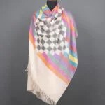 The Canvas Couture Artisanal Pashmina Shawl is a meticulously hand-woven masterpiece that seamlessly combines traditional Pashmina fabric charm with a contemporary twist. Crafted with exquisite skill, its mesmerizing pattern enhances the luxurious feel of pure Cashmere, providing unparalleled softness and warmth. This accessory is designed to elevate your style, making a bold statement with sophistication and grace, offering an indulgent experience in luxury fashion.