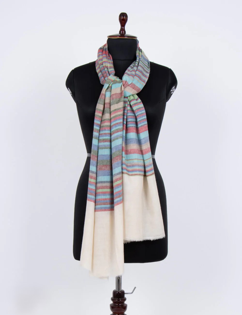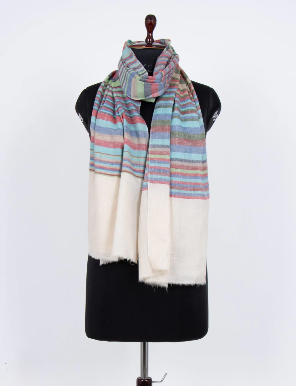 Discover the Carnival Cascade Pashmina Wrap, a masterpiece of craftsmanship and luxury. Handwoven from 100% Pure Ladakhi Cashmere, it offers exceptional softness and warmth. Its sophisticated pattern and vibrant colors transform any outfit, blending opulent comfort with artistic elegance.