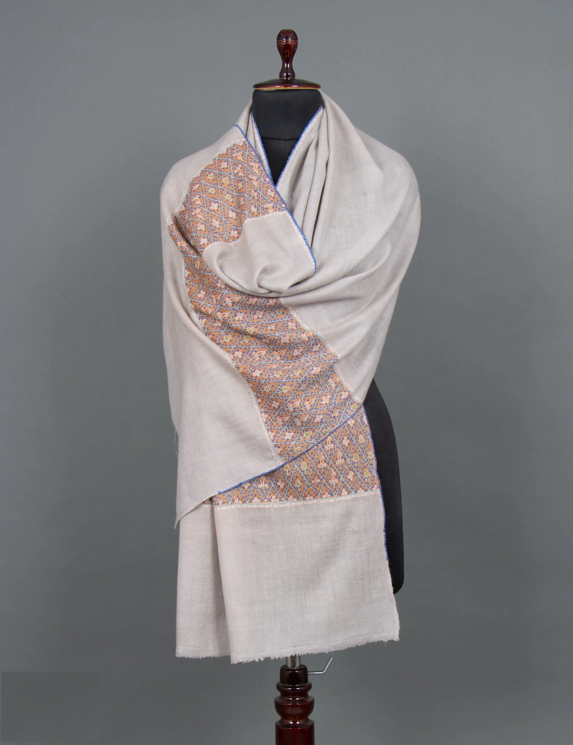 The Cloudy Sky Cashmere Wrap is a meticulously crafted accessory made from the finest Cashmere fibers, offering unmatched softness and warmth. Its intricate embroidery enhances its regal charm, turning it into a statement piece that can elevate any outfit. Perfect for formal events or adding sophistication to everyday wear, this versatile wrap boasts rich hues that exude elegance and timeless style, making it an ideal companion for both winter and fall seasons.