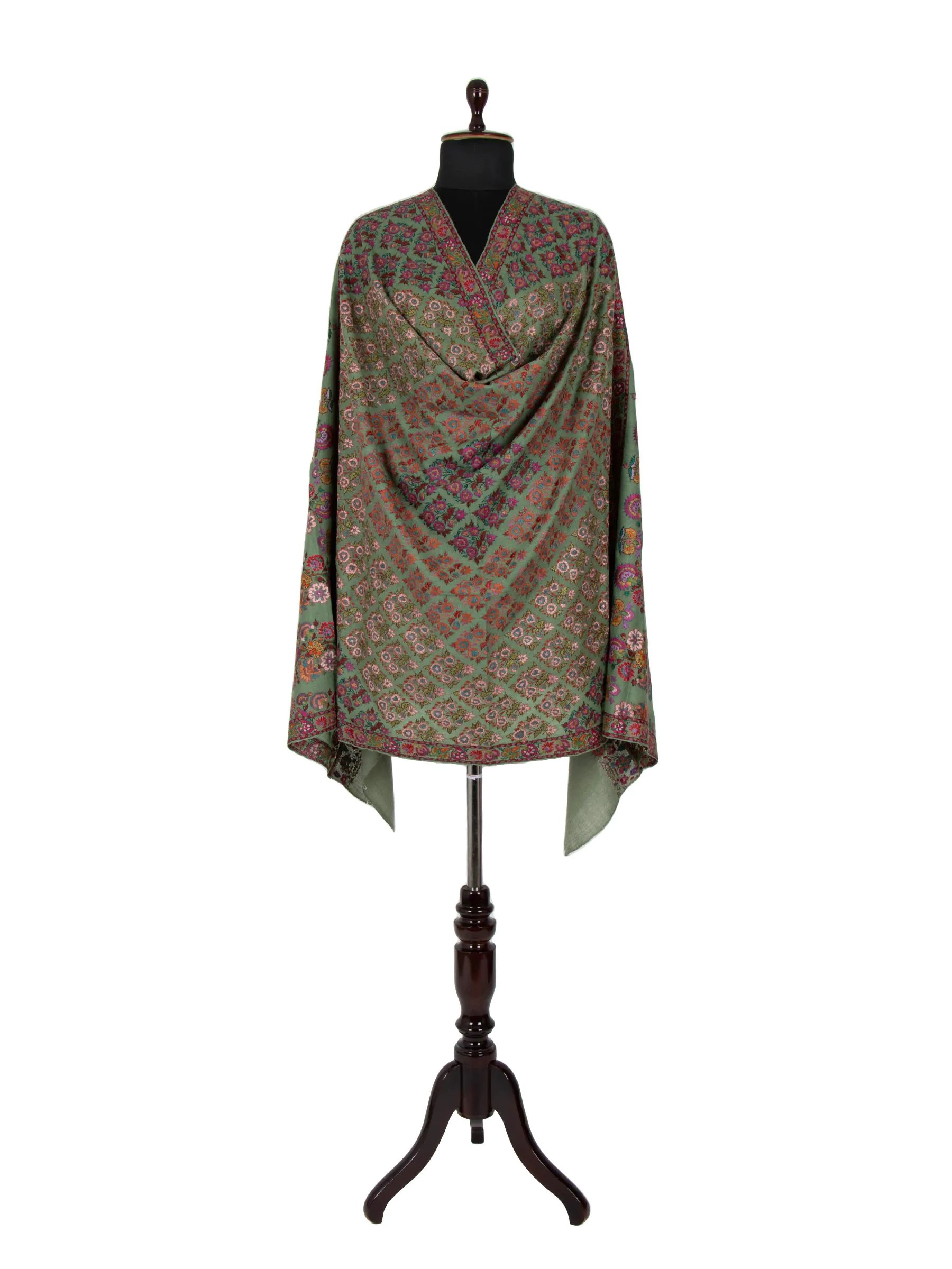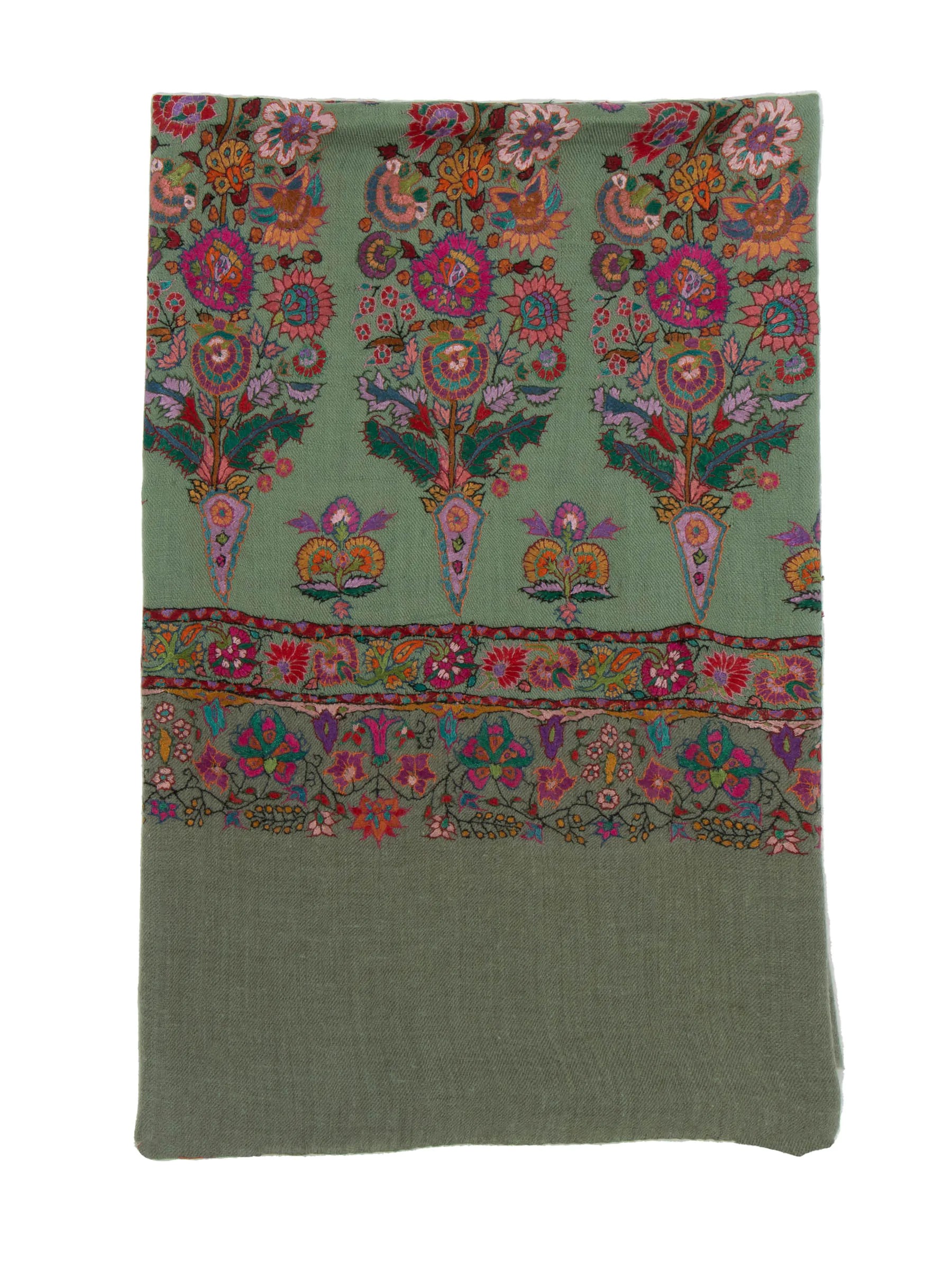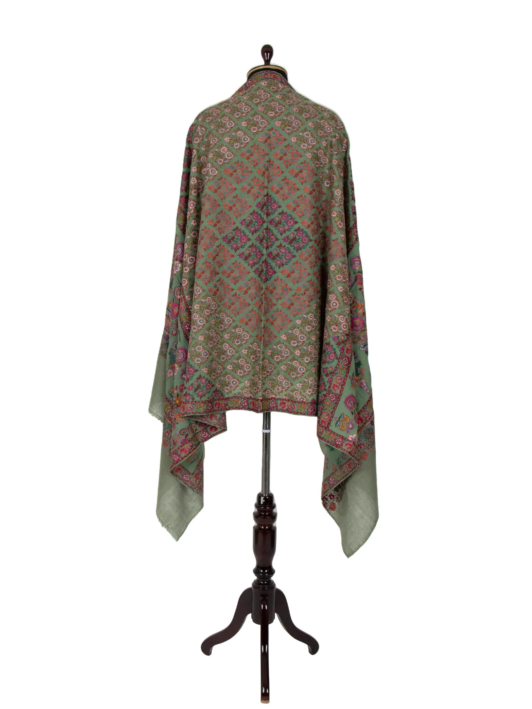 Introducing our Jamawar Pashmina Shawl, a timeless piece of beauty that combines exquisite paper mache embroidery with intricate floral patterns. The delicate yet sturdy paper mache stemwork ensures durability, promising years of elegance. Crafted from the finest pashmina fabric, this shawl is warm, lightweight, and luxuriously soft. Its stunning color and versatility make it a perfect addition to any collection or wardrobe, suitable for special occasions, daily fashion, or a cozy autumn evening. Own a piece of enduring style with our Paiper Machie Pashmina Shawl.