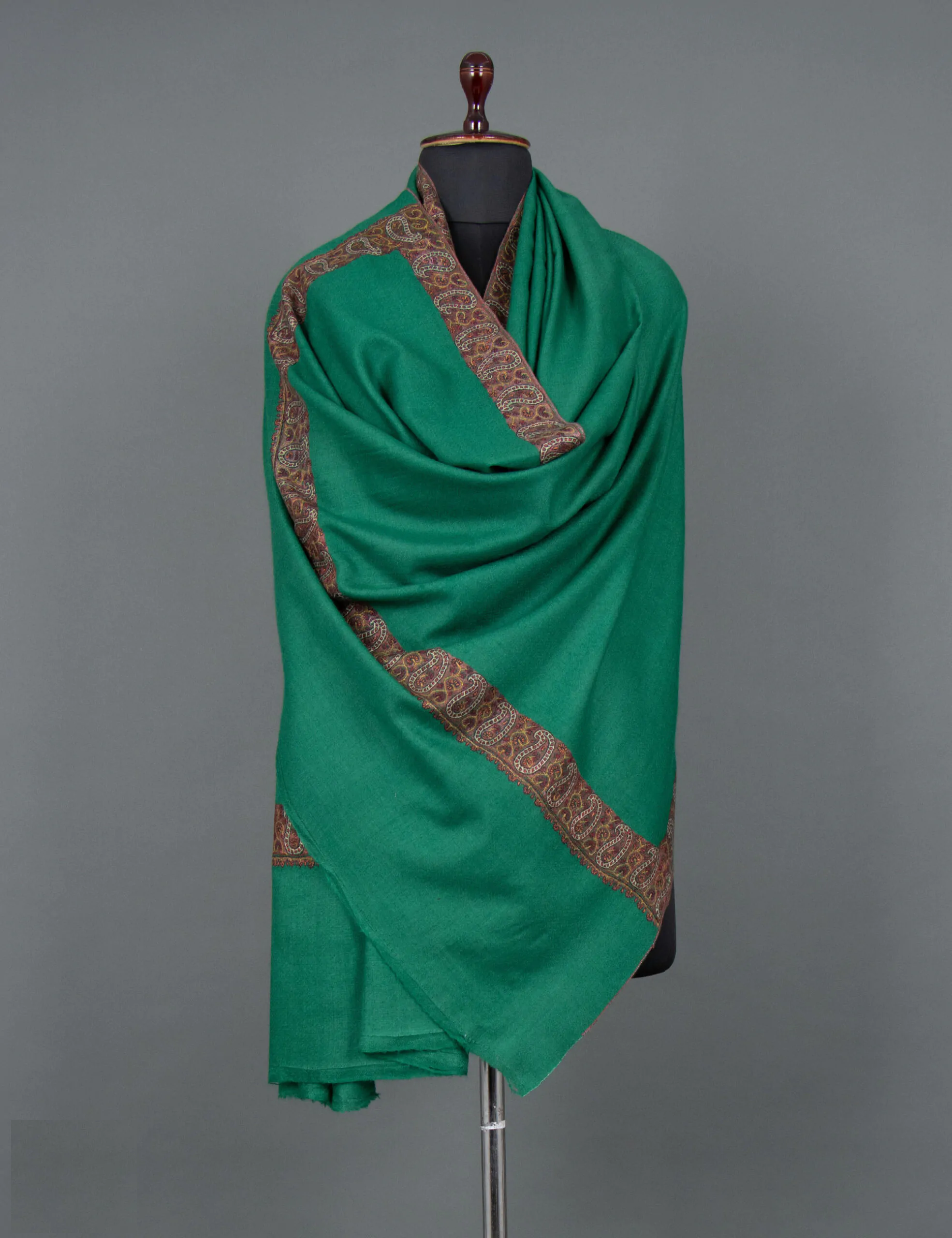 The Green Pashmina Palla Work Shawl is a stylish accessory that enhances winter and fall fashion. Perfect for both formal events and everyday wear, this shawl combines timeless beauty with practical warmth and comfort. Its luxurious weave adds a touch of royalty, making it an ideal choice to elevate your overall look.