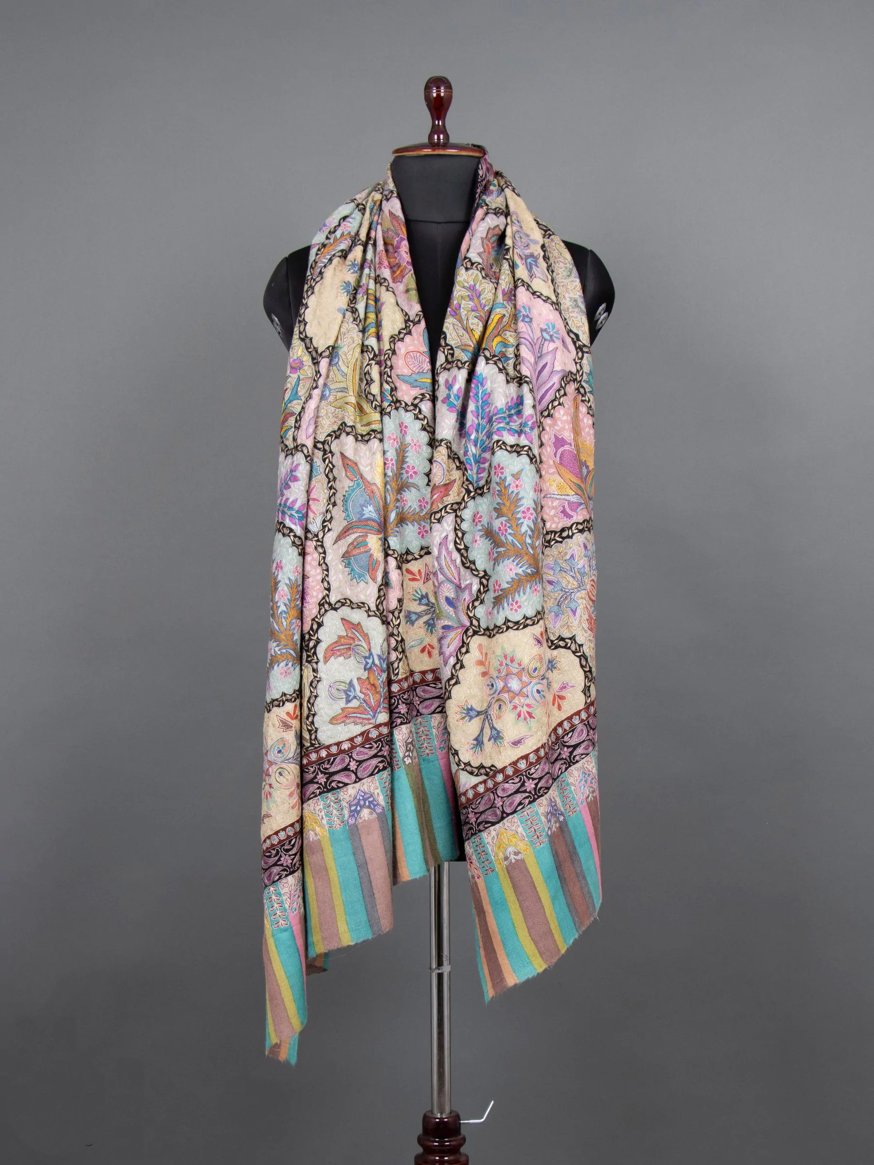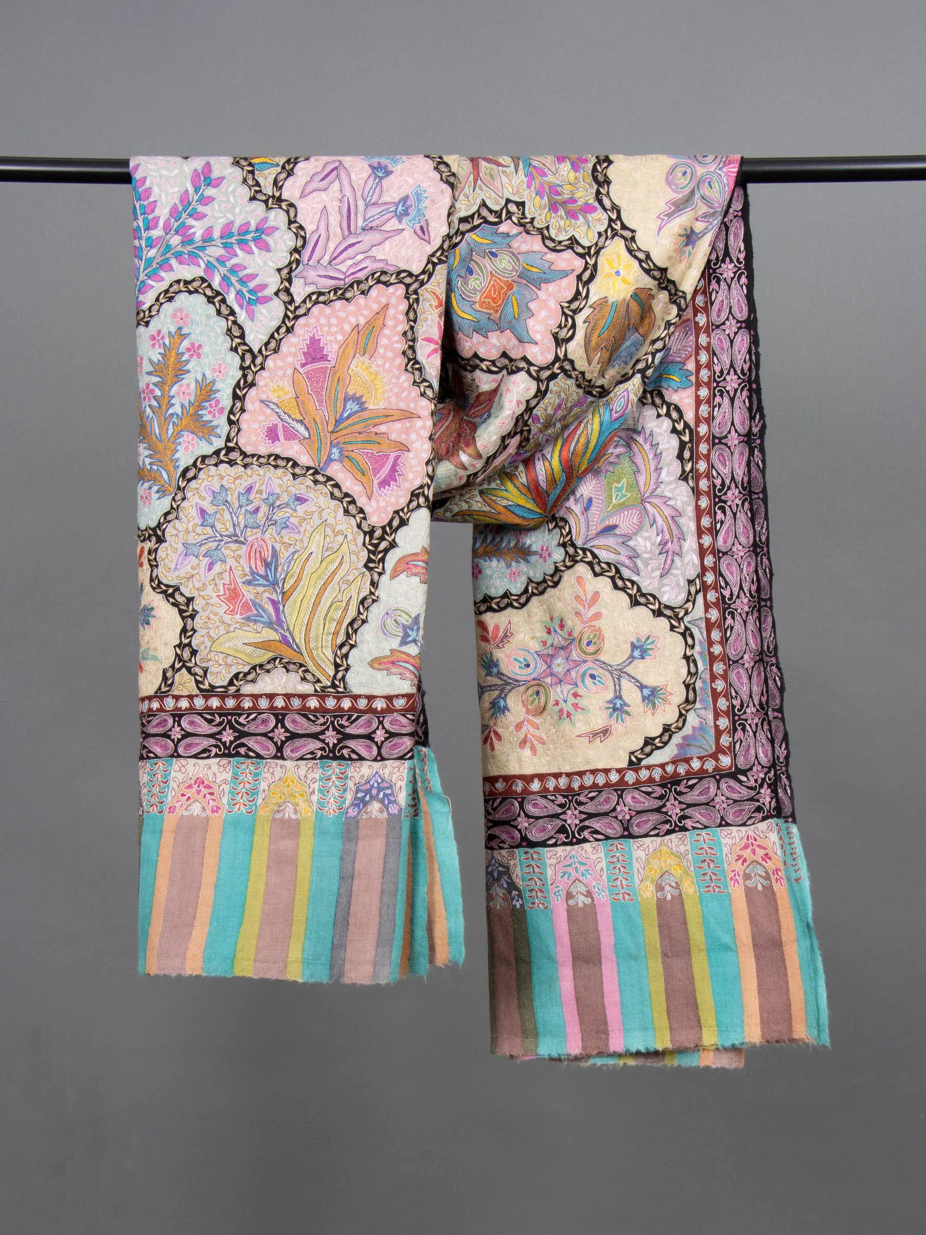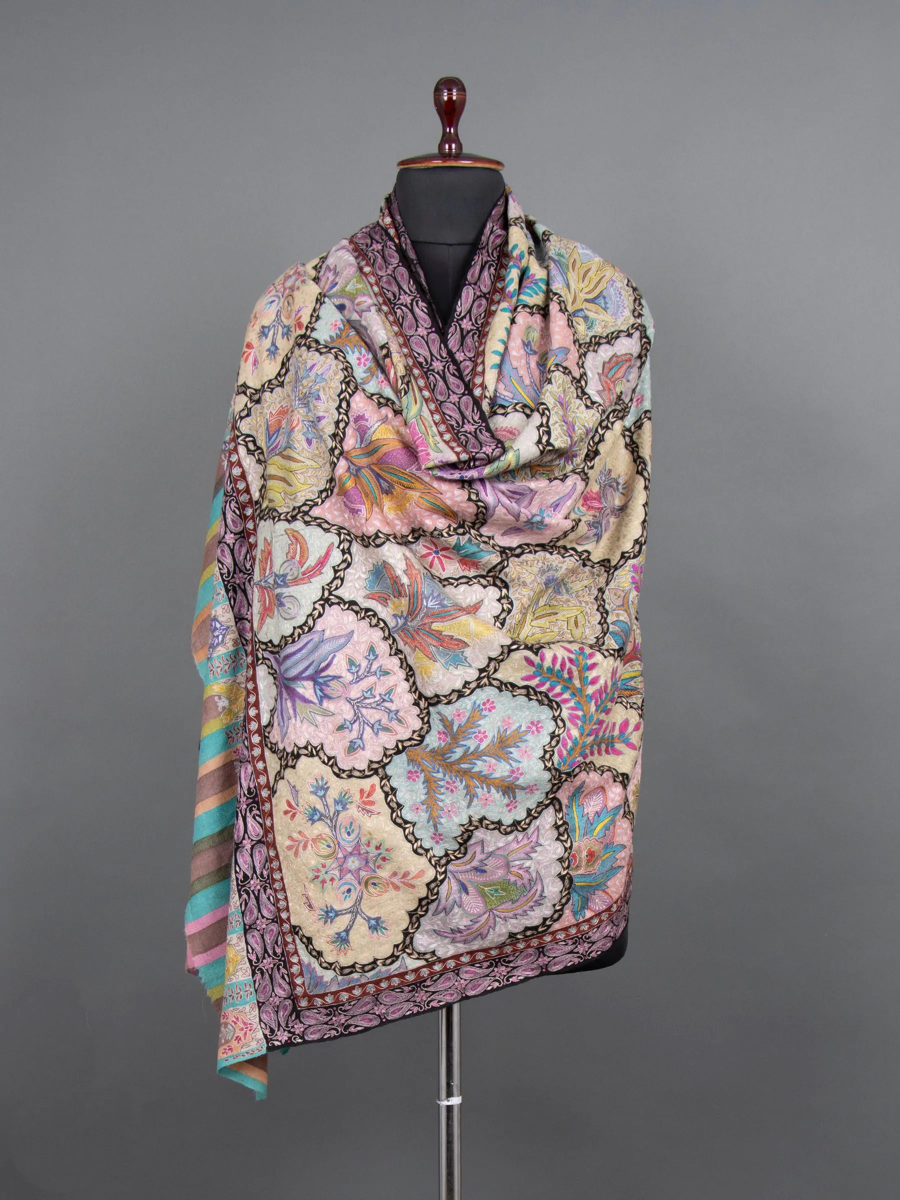 The Mughal Majesty Bridal Kalamkari Pashmina shawl blends ancient craftsmanship with contemporary elegance, offering a delightful accessory that embodies centuries of fine artistry. Experience luxury like never before and elevate your style with this exquisite piece, a testament to heritage and magnificence.