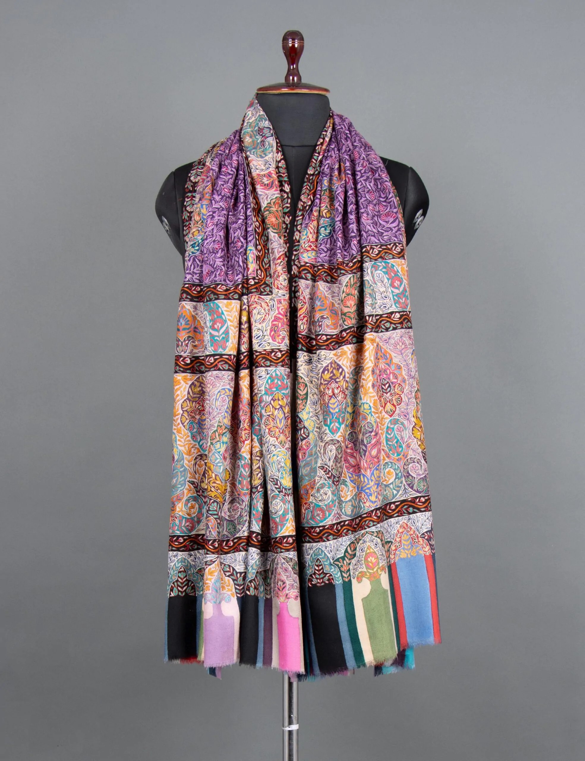 Indulge in elegance with our Nikah Nectar Bridal Kalamkari Pashmina. Handcrafted to perfection, this pure pashmina shawl features intricate kalamkari hand embroidery, showcasing meticulous craftsmanship with delicate floral and paisley motifs.