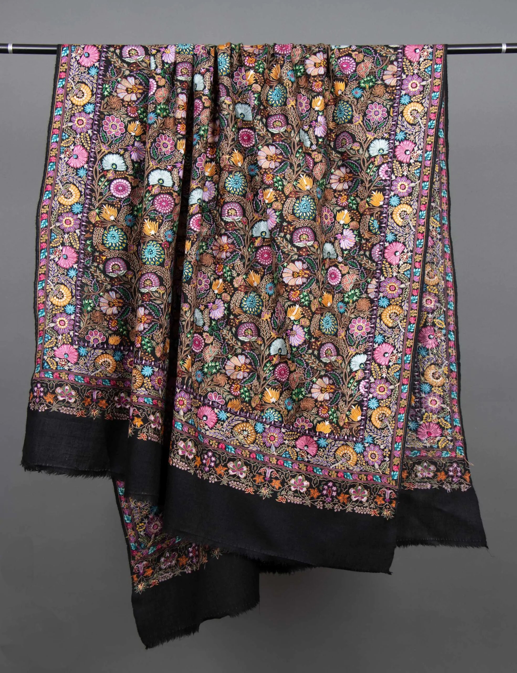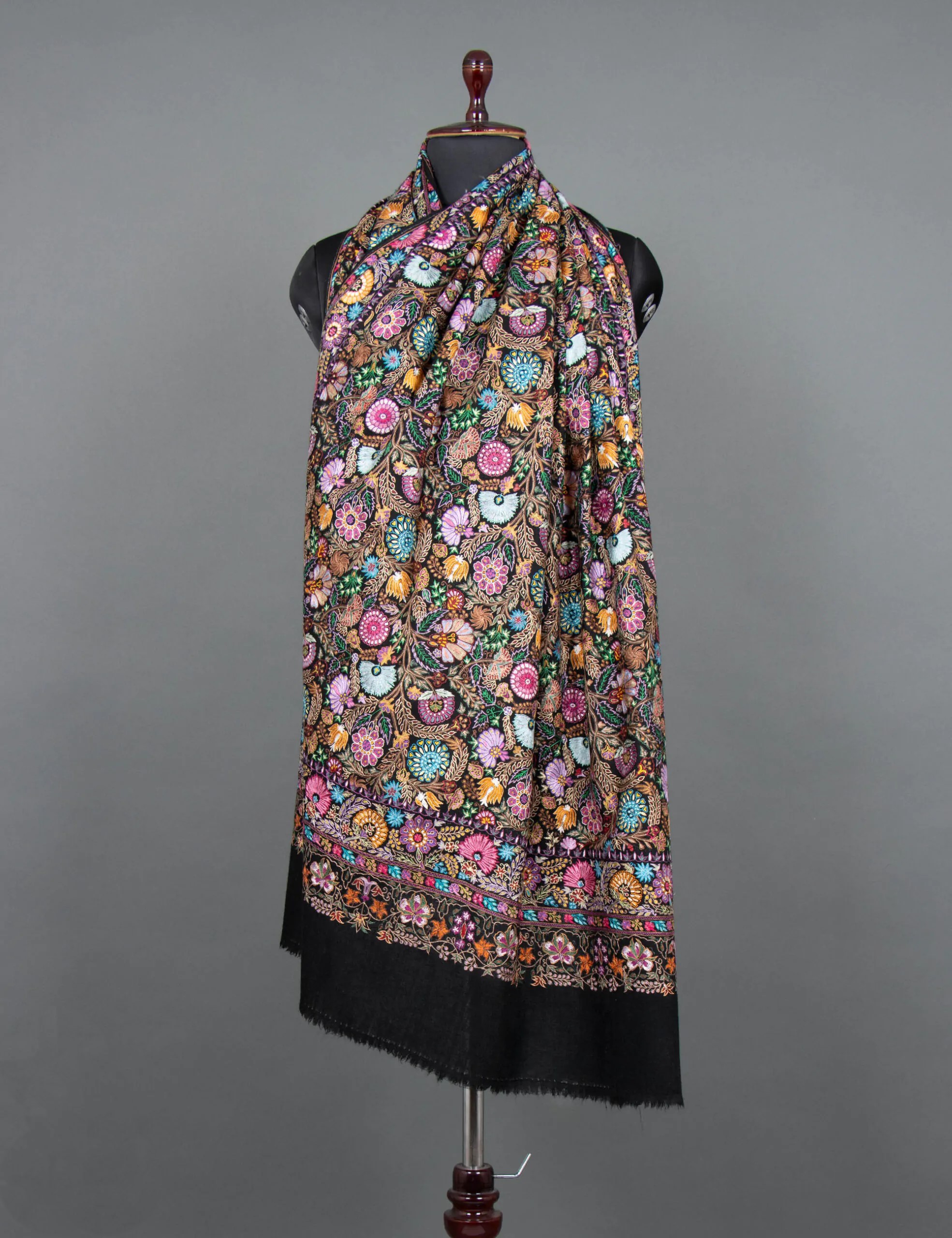 This exquisite Pashmina Delight Shawl is a fusion of timeless craftsmanship and modern elegance. Crafted with meticulous hand-embroidery using sumptuous silk thread, it radiates opulence and refinement. Elevate your style with this unique piece, showcasing a harmonious blend of traditional artistry and contemporary flair. Wrap yourself in luxury and make a striking impression wherever you venture.