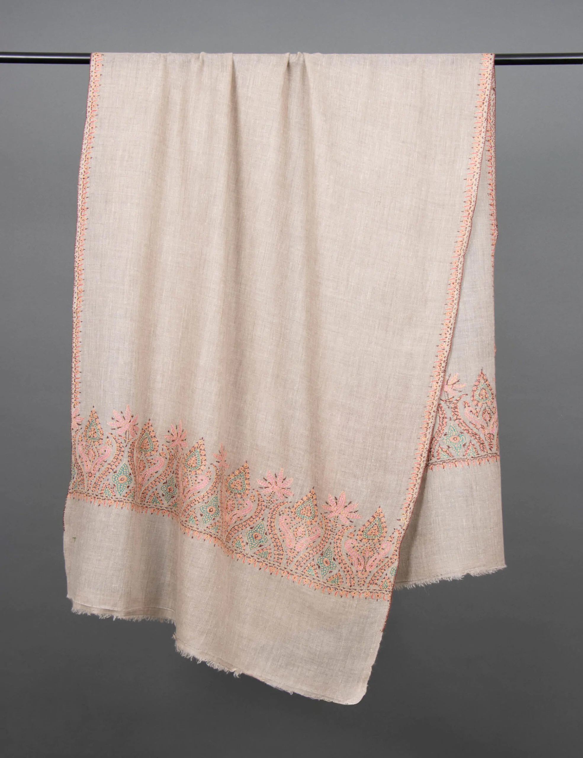 Indulge in luxury with this exquisite ensemble crafted from the finest pashmina fabric, offering unparalleled softness and lightweight comfort. The graceful drape over your shoulders, coupled with intricate embroidery, elevates the piece to new heights of sophistication, ideal for special occasions or glamorous nights out.