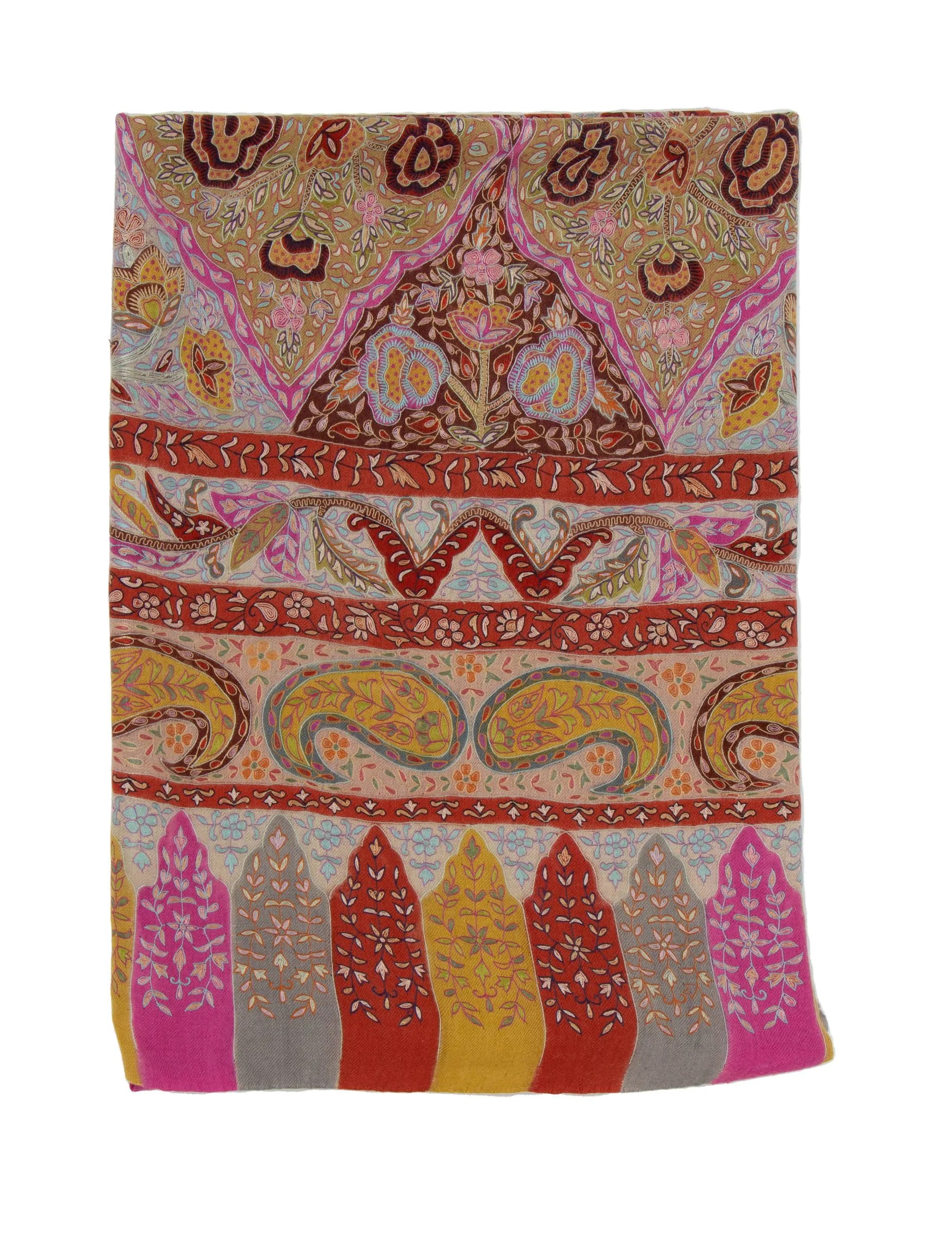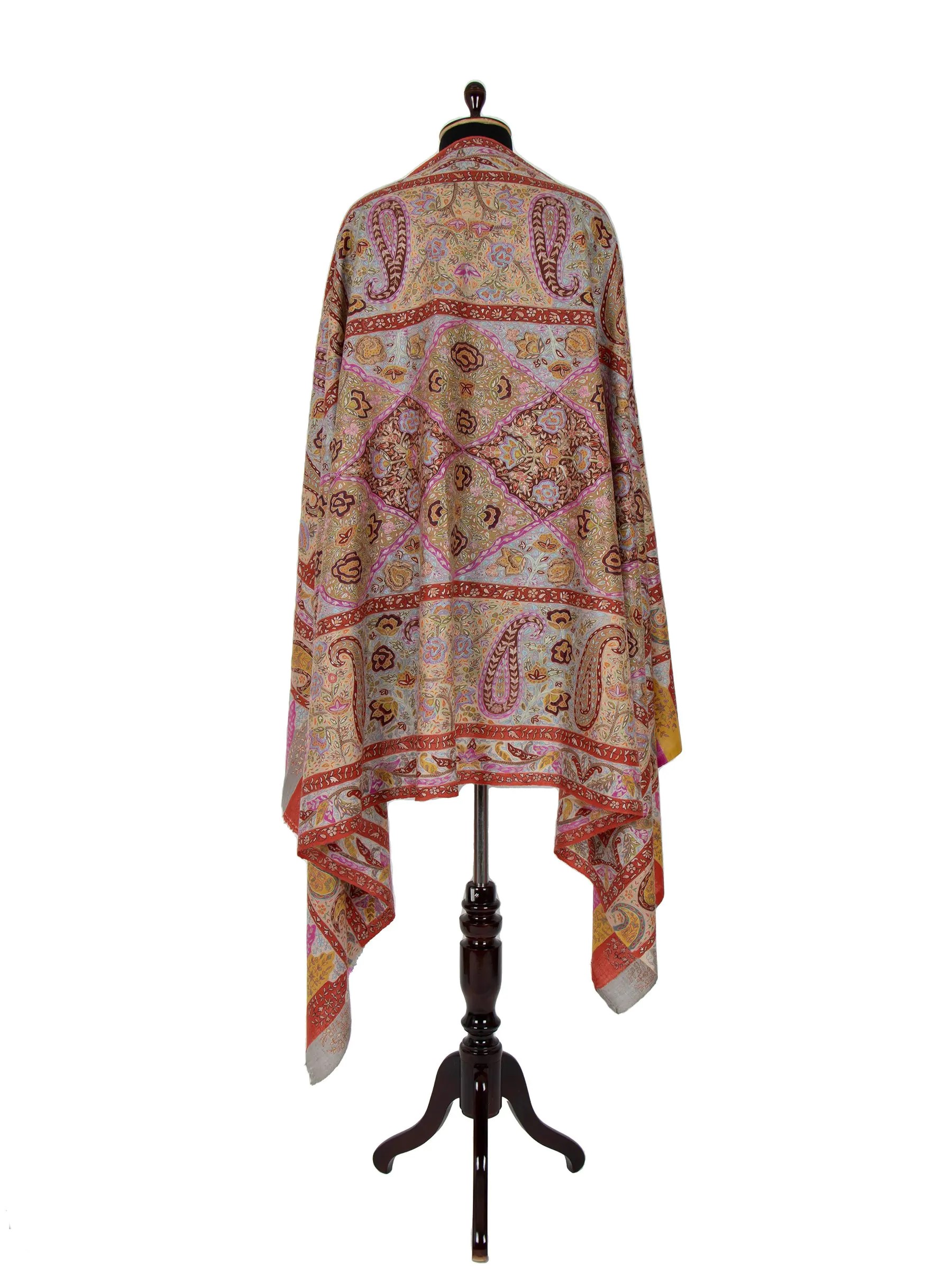 This exquisite Kashmiri Kalamkari shawl is a masterpiece of art and craftsmanship, handwoven by skilled artisans who infuse elements of nature into its fabric. Fashioned from the finest Kashmiri Pashmina wool, it offers a luxurious, warm, and soft feel. Adorned with Kalamkari art, it exudes elegance and sophistication, suitable for both special events and daily wear. Meticulously crafted with hand painting and embroidery in Uttar Pradesh, India, it’s a timeless accessory that adds a touch of refinement to any ensemble, making it ideal for chilly winter days.
