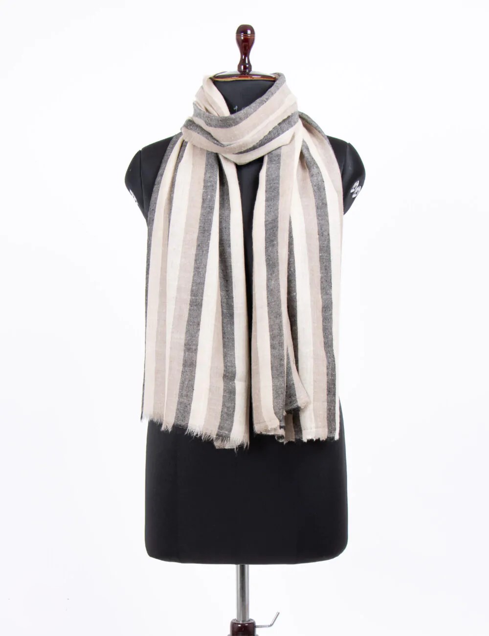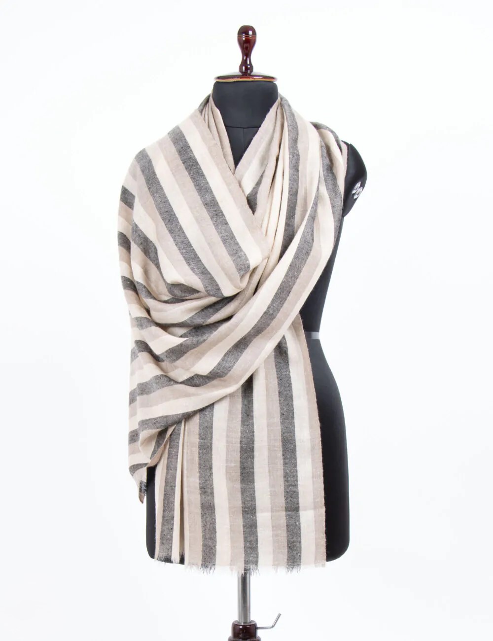 Discover exceptional beauty with the Radiant Cashmere Stripes Wrap, handwoven by master artisans from 100% pure Ladakhi cashmere. Known for its unparalleled softness and warmth, this luxurious wrap features a striking stripe pattern that effortlessly enhances any outfit. Its rich color combination creates a captivating visual experience, offering both sophisticated style and ultimate comfort. Elevate your wardrobe with the Radiant Cashmere Stripes Wrap, where artistry meets elegance.