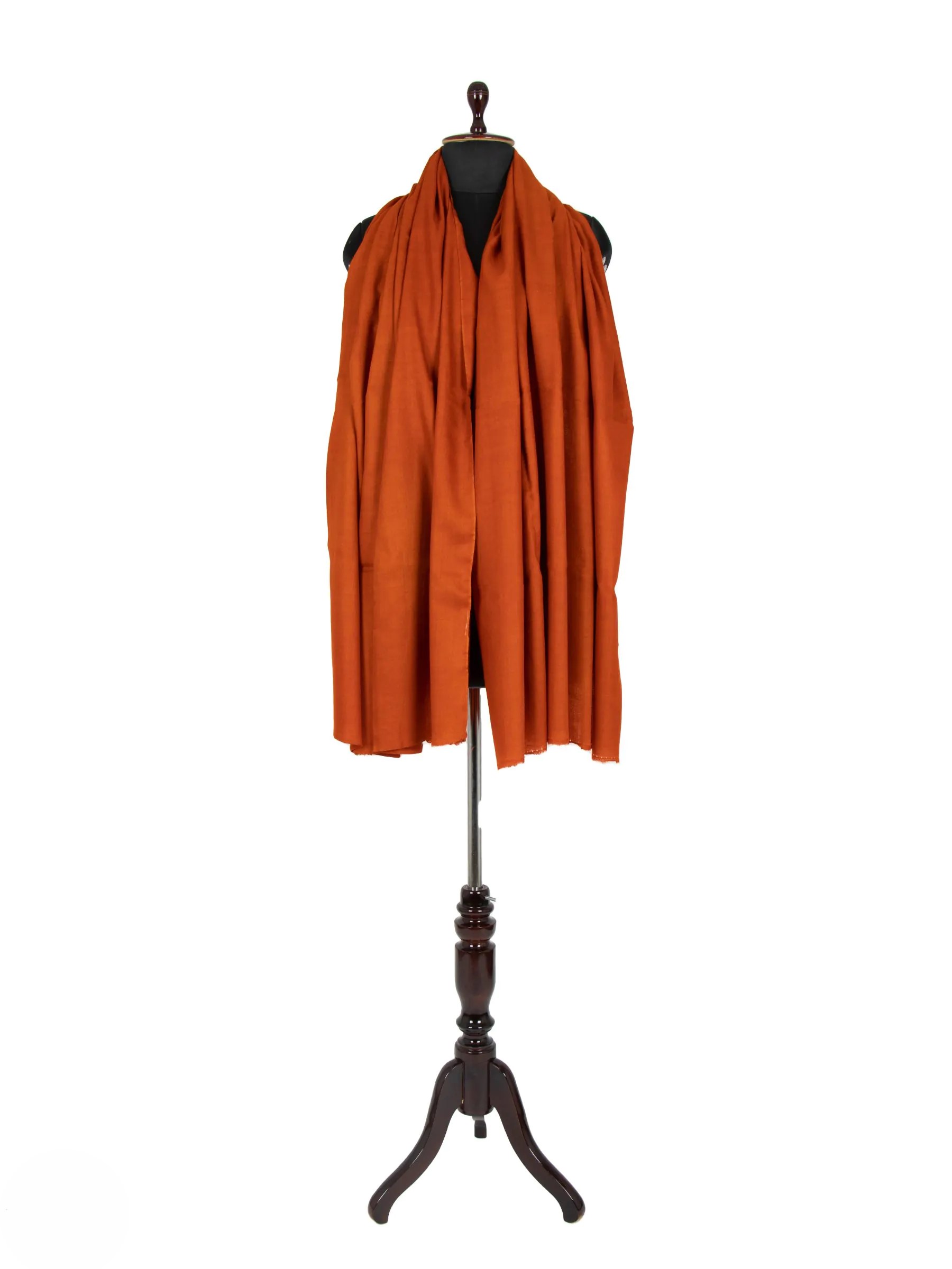 The orange shawl is a luxurious Kashmiri Pashmina crafted from the Pure Cashmere fiber of the Changthangi goat in the Himalayas. Handwoven with intricate detailing and a solid plain base, it is a timeless addition to winter wardrobes. Delicately soft and skillfully crafted in Kashmir Valley villages using historic wooden looms, the shawl boasts a natural texture. Features include an elegant weave and a soft feel, while benefits include an upgrade to winter fashion, durability, and the preservation of Cashmere’s natural texture for warmth and style.