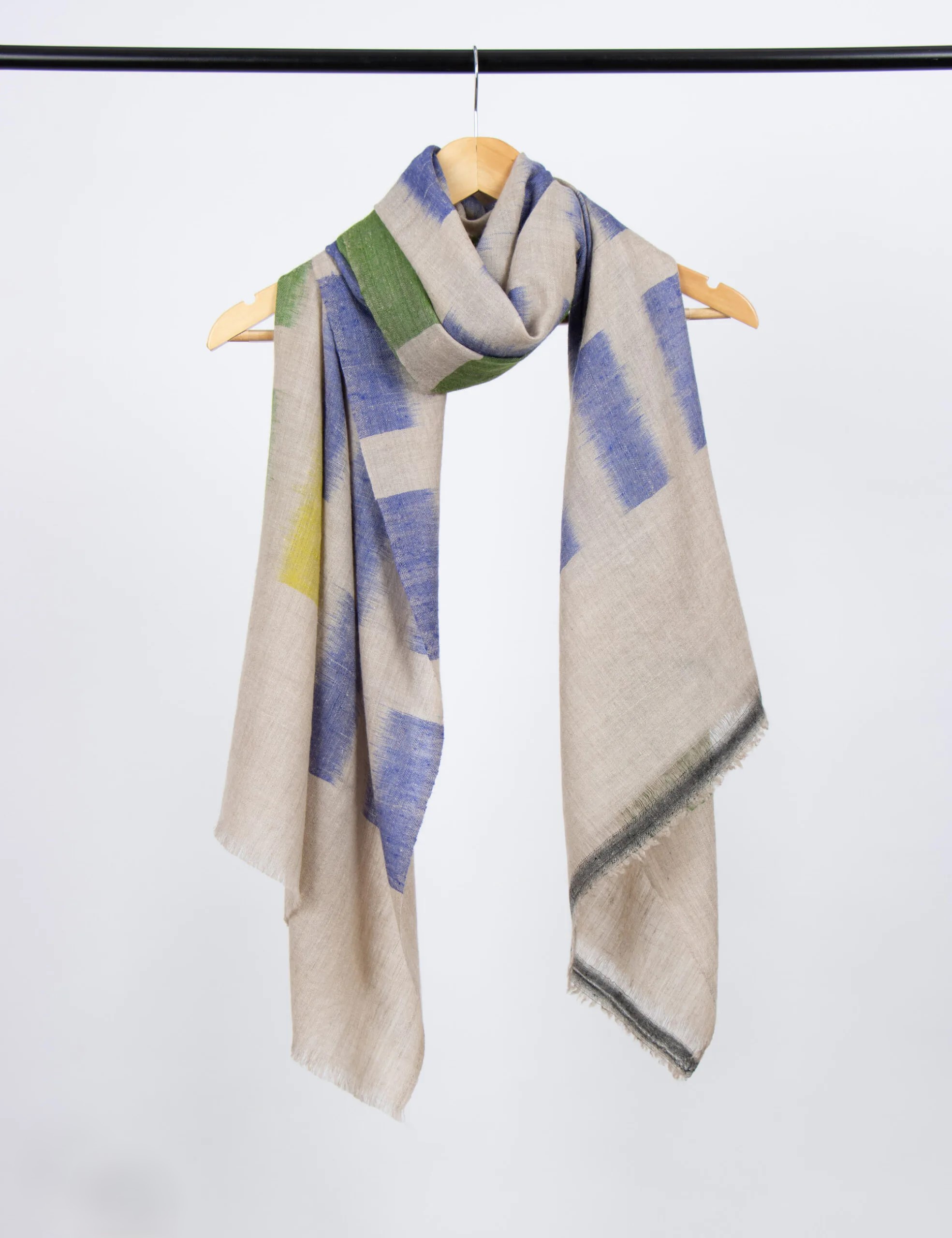 This elegant accessory seamlessly combines traditional Pashmina fabric with a modern twist, featuring an exceptional pattern. Crafted from luxurious Cashmere, the timeless shawl adds sophistication to any outfit. Embrace the richness of heritage and elevate your style with this stunning and versatile accessory.