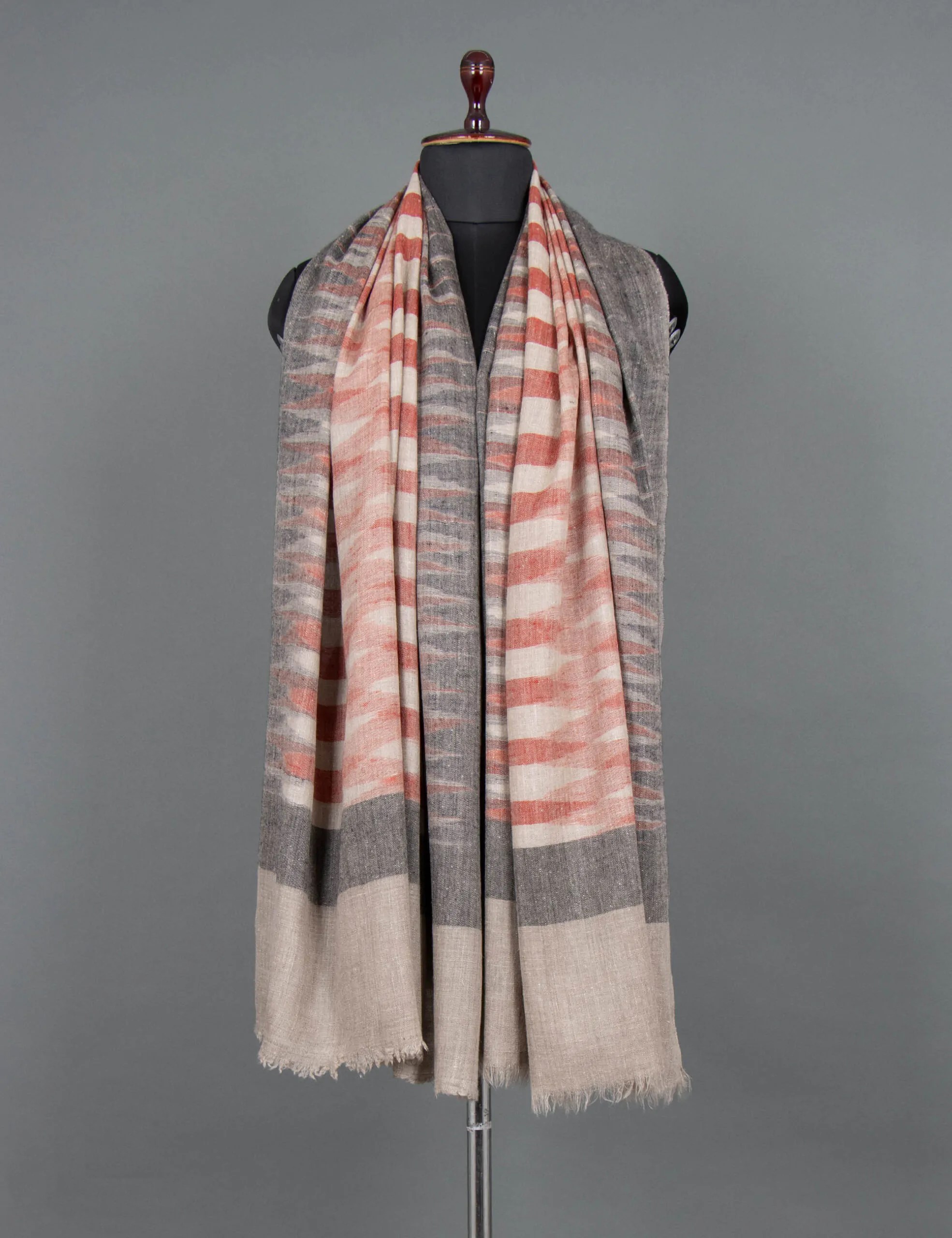 The Timeless Heritage Ikat Pashmina Shawl is not only a striking fashion accessory but also serves as an exquisite gift option. Whether for bridesmaids or as a wedding present, this shawl promises to make a lasting impression. Embrace its borderless allure for a touch of sophistication, elevating your style with its timeless artistry and unparalleled luxury.